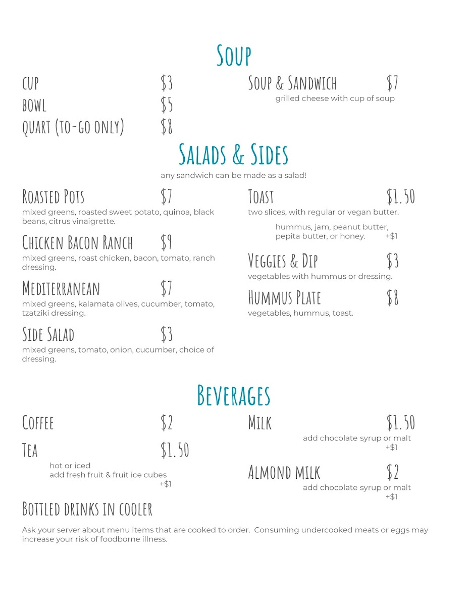 - Hearty Soups: Warm up with their comforting tomato soup, a perfect pairing with any sandwich.